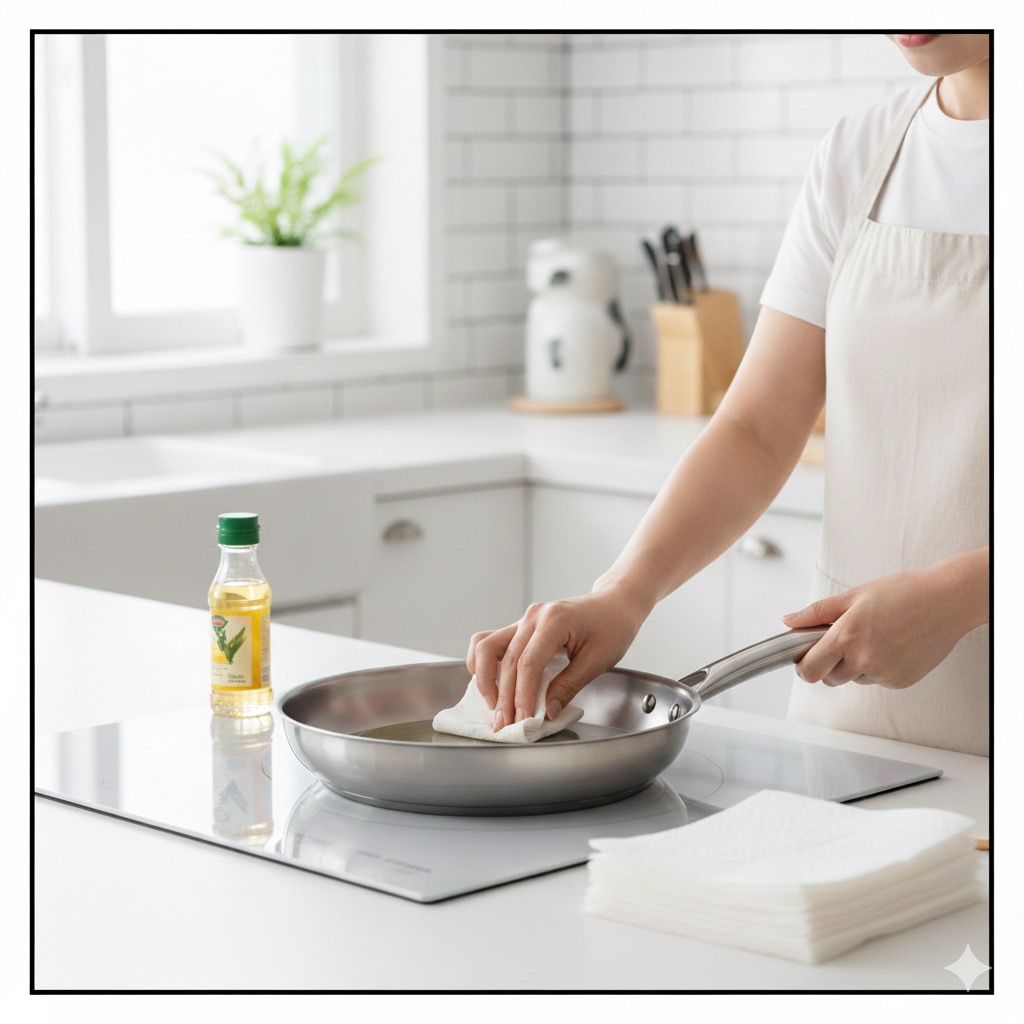새 프라이팬, 바로 요리하면 오래 못 씁니다. 첫 개시 전에 반드시 해야 하는 한 가지와 프라이팬을 더 오래 쓰는 관리 루틴을 자세히 정리했습니다.새 프라이팬을 구매하면 반짝이는 코팅이 너무 예뻐서 당장 요리하고 싶은 마음이 들지만, 사실 첫 사용 전에 꼭 해줘야 하는 ‘한 가지 과정’이 있습니다.이 과정은 시간도 얼마 걸리지 않지만, 해두면 프라이팬이 오래가고, 음식이 달라붙지 않으며, 첫 사용부터 훨씬 편안한 조리가 가능해집니다.많은 사람들이 이 단계를 모르고 바로 요리를 시작했다가 프라이팬 표면이 빨리 상하거나, 기름이 스며들어 얼룩이 생기는 경험을 합니다.오늘은 새 프라이팬을 처음 사용할 때 반드시 해야 하는 이 과정을 중심으로, 더 오래 잘 쓰는 생활 루틴까지 정리해드립니다.⭐ 목차새 프라이팬은..